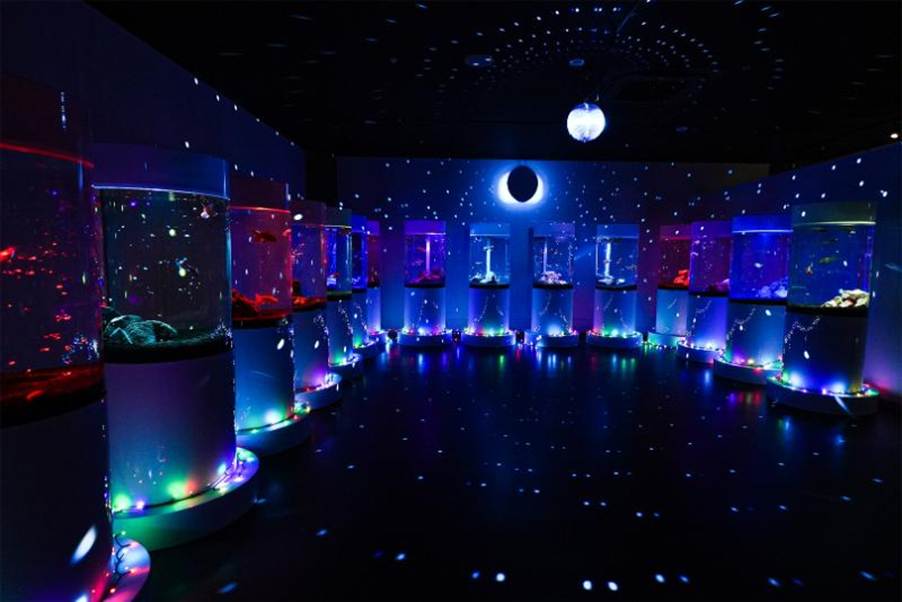 エリアごとにコンセプトが異なり、どの角度からシャッターを切ってもインスタ映えする写真が撮れるのが魅力です。とくにミラーボールが光を反射する中を金魚が泳ぐ「アクアリウム」エリアは、まるで宝石箱の中に迷い込んだような幻想的な空間です。