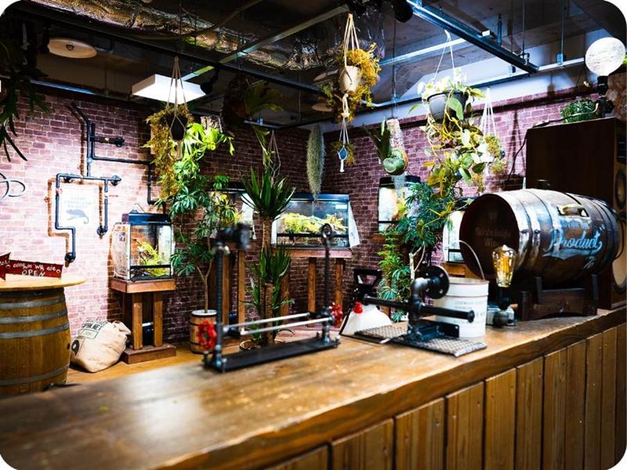 最大の特徴は、生き物との距離の近さです。トカゲやカメへの給餌体験ができるほか、ヘビを首に巻いての記念撮影など、他の動物園や水族館ではなかなかできない体験が待っています。カラフルなライトで飾られた流木アートの展示も見どころの一つで、生き物好きでなくても楽しめる空間です。