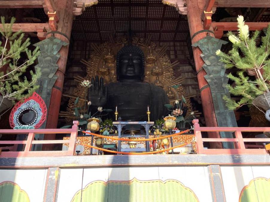 奈良観光の定番中の定番、東大寺。高さ約15メートルの盧舎那仏(大仏)が安置されている大仏殿は、世界最大級の木造建築物として圧倒的なスケールを誇ります。